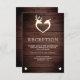 Elegante Empfang-Karte mit einem niedlichen Hirschpaar mit moderner Typografie vor einem Stallholzhintergrund.
