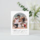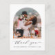Wir bedanken uns für die Postkarte mit Ihrem Foto in einem modernen, gewölbten Bilderrahmen, "danke" in einer eleganten Schrift und Ihr Mr. & Mrs. Name und Hochzeitsdatum in einfacher Typografie. Auf der anderen Seite können Sie eine Danksagung personalisieren und Ihre Vornamen als Signatur hinzufügen, mit Platz an der Spitze, um den Empfänger auf Wunsch persönlich anzusprechen.