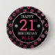 Eleganter Hot Pink Glitzer & Black Blume Geburtsta Button