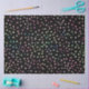 Ein magisches Girly Disco Party holografische Konfetti iridescent Punkte Schwarze Kunstwerk, ideal für besondere Veranstaltungen, Party Dekorationen und einzigartige Feiern. Mit einer Kollektion von schimmernden Imitaten Glitzer Glitzern, holografische Polka Punkte in Rosa, lila, Minze, grün, blau, aquamarin, gelb Pastellfarben, metallische Farbverlauf Pinsel Punkte Muster, auf einem schwarzen Hintergrund.