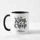Elegante Halloween individuelle Name Tasse für Männer. Das Design enthält den Text "King of Creep" in schwarzer Kalligraphie-Schrift mit Stars, Kronen und Glitzern. Macht für das beste personalisierte Halloween-Geschenk für ihn (es kann jeder von Ihrem Vater bis zu Ihrem Freund/Ehemann sein!). Perfekt, um sie sich ganz besonders zu fühlen, ihr Vertrauen zu stärken und ein einzigartiges und bequemes Geschenk zu bekommen! Wir haben noch viel mehr so elegante Halloween-Designs in Schwarz und Weiß für jeden, bitte Karo aus unserer Kollektion/Shop! Frohe Halloween!