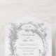 Diese klassische Suite historischer Dekorationen wird durch die Schnitte des französischen Hofmalers Alexis Peyrotte aus dem 18. Jahrhundert inspiriert, die einen verzierten hellgrauen Rahmen aus Acanthus-Blätter, verzierten Schriftrollen, Blume und Blätter aufweisen. Enthält ein Textfeld für Ihre Monogramm/Initialen. Dieses komfortable All-in-One-Format enthält eine abnehmbare UAWG/Response-Karte.
