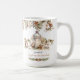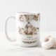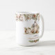 Weiße und cremefarbene Kakao oder Schokolade Weihnachten Grosser Kaffee Tasse im klassischen modernen Bauernstil mit Kiefer, weiße Weihnachtsfeiern, Laterne und einem niedlichen Vogel. Einfache Anpassung des Textes - Kate Eden Art