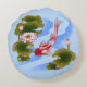 Eleganter Koi-Karpfen im Lotusteich Rundes Kissen