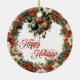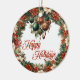 Traditionelles Aquarelldesign Happy Holidays Weihnachtsbaumschmuck klassische Farbe rot und grün und phantastische Illustration bei schweren Zierschriften bis König Stil kombiniert mit schicken festlichen Schriften.