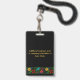 Berufliches und elegantes Design mit einem zarten, blumengeschmückten Detail am unteren Ende, auf schwarzem Hintergrund. Das helle und lebendige Blumendesign von Sukis wurde von ecuadorianischen Handwerkern inspiriert, die in der Region Los Andes in Südamerika wohnen. Diese lateinamerikanischen Textilhandwerker spezialisieren sich auf die aufwändige und dekorative Stickerei von Hand. Alle Texte in der Goldtypografie sind für Sie personalisierbar, um Ihr Abzeichen individuell zu gestalten und einzigartig zu machen. Ideal für Groß und Klein, Schulen, Sonderveranstaltungen und vieles mehr. Hinweis für die Übertragung von Design auf andere Produkte: Bitte legen Sie die Designschichten so oft wie nötig nebeneinander, um die gewünschte Länge zu erreichen. Das Verschneiden von Mustern funktioniert nicht wie erwartet, da das Design ein dünnes Band mit passenden Musterelementen nur am Ende simuliert.