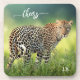 Ein wunderschöner großer Untersetzer mit Leoparden in einer grasbewachsenen Savanne.