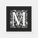 Eleganter Letter M White auf schwarzem Monogramm Serviette