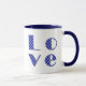 Eleganter LIEBE-Platz in Blue Checkered Letters Tasse
