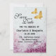 Eleganter Lila Glitzer & Gold Schmetterling Save the Date mit lila Glitzer , einem glänzenden Goldschmetterling und einer modernen Textvorlage. Die Rückseite der Karte hat eine Namensvorlage . Ein perfektes Design, das mit der Hochzeitsdekoration wie modernes, romantisches & luxuriöses Thema übereinstimmt.Bitte klicken Sie auf den personalize Button, um es mit Ihrem eigenen Text zu personalisieren. Besuchen Sie bitte meinen Shop " https://www.zazzle.com/store/loveyouart" für andere Entwürfe oder passende Hochzeitseinladung, Gunst und Schreibwaren. .