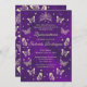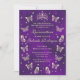 Eleganter Lila Goldene Quinceanera Tiara Butterfly Einladung