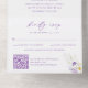 Eleganter Lila Monogram Floral Wedding QR Code All In One Einladung