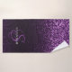 Eleganter Lila Monogram Script Stilvoller Glitzer Badehandtuch