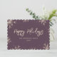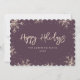 Lila Happy Holidays Karte mit glitzernden Schneeflocken. Diese minimalistische und dennoch elegante Urlaubskarte lässt sich einfach mit Ihrem Text personalisieren.