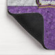 Liebliche Damen Maus-Pad, mit Grafik eines lila Straußenleder-Look. Eine hellgraue Straußenlederband erstreckt sich in der Mitte und ist mit einem goldenen Ton und einem amethystischen Schnalle dekoriert. Lila Text, in der Schnalle, ist bereit, zu personalisieren. Die elegante Art, Ihren Schreibtisch, die Zuhause oder das Büro zu kleiden.