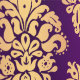 Ein wunderschönes klassisches Viktorianisches inspiriertes Damast-Muster mit einer modernen Drehung in den Imitaten gold und dunkel lila.