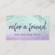 Diese hübsche Referenzkarte Design bietet Farbverlauf Imitate mint grünen Glitzer Marmor Textur, Imitate lila Textur und elegante Kalligraphie Schriftart. Personalisieren Sie das Produkt mit Ihrem Namen und Jobtitel.