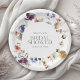 Ein Kranz aus eleganten Blumen umgibt Ihren Text auf diesem Teller für die Brautparty mit romantischen Wasserfarbenblüten und verfeinerter moderner Typografie. Perfekt für Gartenpartys, Brunchs und exklusive Brautpartys im Frühling und Sommer sowie für Brautpartys in den Herbstmonaten. Anpassen mit dem Namen der Braut und dem Datum der Veranstaltung. Dieses Produkt ist Teil einer abgestimmten floralen Party-Kollektion für Bräute und enthält passende Einladungen, Favor-Tags, Dankeskarten, Willkommensschilder, Speisekarten und Partydekoration für ein zusammenhängendes und schön gestaltetes Ereignis. Die Teller sind in 2 Größen erhältlich; hier gezeigt in der kleineren Größe mit 18 cm Durchmesser, sind sie auch in einer größeren Größe mit 23 cm Durchmesser erhältlich.