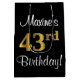 Dieses raffinierte, stilvolle und luxuriöse Geschenktütendesign besticht durch die Ordnungsnummer "43.", die ein großes, vergoldetes Erscheinungsbild von Imitation/Imitaten aufweist. Zusätzlich zu einer Geburtstagsgrüßbotschaft und einem benutzerdefinierten Empfängernamen in einem skriptartigen Schriftart. Der Hintergrund ist schwarz. Eine Geschenktasche wie diese könnte eine lustige Art sein, ein Geburtstagsgeschenk oder Geschenk für jemanden zu verpacken, der seinen dreiundvierzigsten Geburtstag feiert. [~Z0000513]
