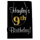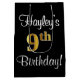 Dieses stilvolle, raffinierte und elegante Geschenktütendesign mit Geburtstagsthema zeichnet sich durch die Ordnungsnummer "9th" aus, die ein vergoldetes Gradientenmuster von Imitation/Imitaten sowie eine Geburtstagsgrüßbotschaft und einen benutzerdefinierten Empfängernamen in einem skriptartigen Schriftart aufweist. Der Hintergrund ist schwarz. Eine Geschenktasche wie diese kann eine lustige Art sein, ein Geburtstagsgeschenk oder ein Geschenk für jemanden zu verpacken, der seinen 9. Geburtstag feiert. [~Z0000513]