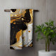 Das "elegante Marmor Gold Luxury Glam Feminine Bath Handtuch Set" ist ein visuelles Meisterwerk, das moderne Ästhetik nahtlos mit klassischer Eleganz verbindet. Dieses luxuriöse Handtuch-Set wurde entworfen, um das Ambiente jedes Badezimmers mit seiner atemberaubenden Farbkombination, Mustern und Texturen zu steigern. Das Set dominiert durch seine eleganten Formen, die moderne und klassische Elemente harmonisch miteinander verbinden. Die Verwendung von Marmormustern in Schwarz und Weiß schafft ein zeitloses und raffiniertes Ambiente, während der Einbau metallischer Goldakzente eine Touch Glamour verleiht. Diese goldene Touch, kombiniert mit schimmernden Schwarz-Weiß-Tönen, ergibt eine schicke und stilvolle Ästhetik, die sich an jene richtet, die den modernen Luxus schätzen. Die Handtücher sind mit Marmor und kunstlich inspirierten Designs gestaltet und bieten einen einzigartigen und auffälligen visuellen Touch. Die Aufnahme von Glitzer- und Goldfoliendetails verleiht dieser Handtücher eine Touch Glanz und macht sie zu einem Aushängeschild in allen Badezimmern. Die künstlerische Kombination aus Stein und Metalelementen verleiht dem Ganzen ein elegantes Gesamtbild, das eine perfekte Balance zwischen klassischer Eleganz und zeitgenössischem Stil bietet. Die Farbpalette dreht sich um eine auffallende Kombination aus Schwarz, Weiß und Gold. Die tiefen, reichen Farbtöne und die knusprige Farbe Weiß bilden ein zeitloses Fundament, während die metallische goldene Akzente ein Element der Opulenz einbringen. Das Zusammenspiel dieser Farben schafft ein Gefühl von Modernität und raffiniertem Geschmack. Dieses Handtuch-Set ist eine ideale Wahl für alle, die eine luxuriöse und stilvolle Badezimmerdekoration schätzen. Zusammenfassend lässt sich sagen, dass das "elegante Marmor Gold Luxury Glam Feminine Bath Set" ein Symbol für raffinierten Geschmack und Opulenz ist. Die raffinierte Mischung aus Marmormustern, metallischem Gold und künstlerischen Details macht es zu einer herausragenden Wahl für alle, die ein modernes, glamouröses und absolut stilvolles Bad suchen. Dieses Handtuchhandtuch-Set verbindet klassische und zeitgenössische Elemente mühelos, was zu einem luxuriösen und optisch atemberaubenden Accessoire führt, das das Bad in ein elegantes Heiligtum verwandelt.