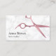 Moderne Visitenkarten für Friseursalons mit Imitate Rose Goldschere, weißem Marmorboden und elegantem Kalligraphie-Schriftart.