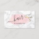Moderne und elegante Visitenkarten für Friseursalons mit Imitaten, Goldschere, rosa Wasserfarbe, weißer Marmorstruktur und elegantem Kalligraphie-Schriftart.