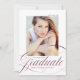 Elegante Ankündigung eines Abschlusses mit dem Senior Foto des Absolventen und einem modernen Kalligraphie-Schriftart. Personalisieren Sie die Ankündigungen für den Abschluss des Fotos, indem Sie den Namen, den Namen der Schule und das Jahr des Abschlusses des Absolventen hinzufügen. Auf der Rückseite der Graduierungsankündigungen befindet sich ein stilvolles Mond- und Weißtrellis-Muster.