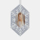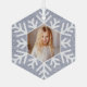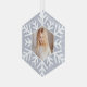 Fügen Sie Ihrem Baum mit diesem eleganten minimalen Imitat ein Glanzstück Freude lila Glitzer Schneeflocke Foto Hexagon-Ornament aus Glas. Unser Design verfügt über ein Imitat lila Glitzer Hintergrund mit einem Snowflake Foto Rahmen, um Ihr spezielles Foto zu zeigen. Ein wunderschönes Foto-Sake-Ornament, das sich perfekt eignet, um mit Freunden und der Familie zu teilen.
