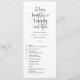 Dieses elegante Hochzeitsflach-Programm besticht durch eine elegante Kalligraphie und einen schlichten serifenlosen Typografie-Schriftart für einen puristischen und modernen Look. Dies ist eine wunderbare Möglichkeit, Ihre Gäste über die Reihenfolge Ihrer Hochzeitsfeier zu informieren. Die Einfachheit dieses Designs verleiht Ihrer Hochzeit eine Touch Eleganz. Es funktioniert gut mit vielen Hochzeitsthemen und ist definitiv eine großartige Ergänzung zu Ihrem Hochzeitsgeschenk. Einfach Namen und Formulierungen in wenigen Schritten anpassen und den QR-Code und Hashtag personalisieren, um Ihrem Programm eine angenehme persönliche Touch zu geben. Bitte beachten Sie: Die elegante Kalligraphie der Formulierungen "zu Liebe, Lachen und glücklich immer danach" zusammen mit den Zeilen und anderen grafischen Werken und Elementen kann nicht bearbeitet, gelöscht oder verschoben werden. Sie sind repariert.