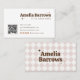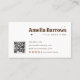 Diese minimalistische Visitenkarte besticht durch ein schlichtes und dennoch elegantes Design mit einem dezenten Hauch von Glanz. Der saubere, weiße Hintergrund und die braunen Akzente schaffen ein raffiniertes Aussehen, während die kleinen Sterndetails einen Hauch von Lustigkeit verleihen. Die Karte enthält einen QR-Code, um die gemeinsame Nutzung Ihrer Website, Social-Media-Links oder anderer wichtiger Informationen zu erleichtern. Ideal für Einzelpersonen oder Unternehmen in einer Vielzahl von Branchen, darunter Schönheit, Mode, Design und vieles mehr.