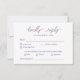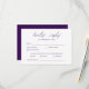 Die RSVP-Karte für die Mahlzeit bietet elegantes Drehbuch mit lila Hintergrund und modernem minimalistischem Stil. Es ist anpassbar. Sehen Sie sich andere Produkte aus dieser Sammlung an.