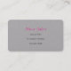 Diese zweiseitige Visitenkarte, die für einen Salon oder einen Friseur entworfen wurde, verbindet minimalistisches Design mit einer raffinierten, femininen Touch. Vorderseite: Auf der rechten Seite befindet sich eine Silhouette von Kopf und Schultern einer Frau mit einem eleganten Bun, in Jetschwarz. Auf der links Seite wird "Name Salon" in zwei verschiedenen Schriftart geschrieben: einem fett formatierten Sans-Serif-Schriftart für "Name Salon" und einem kleineren Hot-Rosa-Script-Schriftart für den Salon unten. Die Kombination aus Grau, Schwarz und Hot Rosa schafft einen interessanten visuellen Kontrast. Zurück: Diese Seite bietet Platz für Kontaktdaten wie "LOCATION", "TELEFONNUMMER" und "GMAIL/WEB", die in einem einfachen serifenlosen Schriftart geschrieben sind. Oben wird der Salonname wieder im selben heißen rosa Script-Schriftart geschrieben. Der Hintergrund beider Seiten ist ähnlich wie Leinen oder Leinwand Papier und verleiht ihm ein berufliches und erstklassiges Gefühl. Die Ecken der Visitenkarte sind abgerundet und fügen dem Design eine moderne und einzigartige Touch hinzu. Diese Karte ist ideal für Unternehmen, die ein anspruchsvolles, stilvolles und erkennbares Bild projektieren möchten.