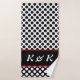 Die Badehandtücher sind mit einem mit Monogramm, schwarz-weiß gestrichenen Polka-Dot-Muster geschmückt. Um das Hochzeitsgeschenk für Neuvermählte zu personalisieren, ändern Sie die Füllfarbe und die Initialen. Zusätzliche Anpassungen sind, um die Initialen auf einen vollständigen Namen zu vervollständigen, den Schriftart, die Farbe des Schriftartes oder die Größe des Schriftartes zu ändern. Bitte denken Sie daran, auch die Farbe der Form anzupassen. Für Hilfe bei der Anpassung von Farben und Design wenden Sie sich bitte an https://t.me/KBMD3signs_chat.