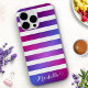 Erstellen Sie eine einzigartige personalisierte Telefonzelle mit einem farbenfrohen rosa, lila und blauen Hintergrund und einem weiß gestreiften Muster. Textvorlage erleichtert die Eingabe Ihres Namens.
