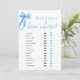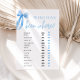 Fügen Sie Ihrem Brautparty eine Touch von Raffinesse hinzu, mit dem Spiel "Who Has Been Where", das ein modernes blaues Bogen-Design bietet. Dieses spannende Spiel lädt die Gäste dazu ein, ihre Reiseerfahrungen auszutauschen und zu entdecken, wer an verschiedenen Reisezielen gewesen ist, Gespräche zu führen und Gebäude-Verbindungen unter den Teilnehmern zu finden. Das elegante blaue Bogen-Thema ergänzt Ihr elegantes Event und die Spielkarten stehen zum sofortigen Download zur Verfügung, sodass sie einfach auf der Zuhause gedruckt werden können. Dieses Spiel ist perfekt, um Ihren Feiern ein unterhaltsames und interaktives Element hinzuzufügen. Es wird Ihnen unvergessliche Momente und lebendige Diskussionen bescheren. Wenn Sie irgendwelche Fragen haben oder Hilfe benötigen, dann können Sie sich gerne an uns wenden!