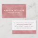 Eleganter moderner Blush Shimmer Girly Chic Stylish Business Cards mit einem stilvollen, rot-rosa-strukturierten Shimmer-Muster mit einem Overlay Ihres Namens und Ihrer Firma oder Benennung an der Vorderseite. Auf der Rückseite finden Sie Ihre personalisierten Kontaktdaten. Personalisieren Sie den Text durch Bearbeiten in den bereitgestellten Textfeldern. Entworfen für Sie von Evco Studio. Weitere Designs und koordinierende Elemente finden Sie unter www.zazzle.com/store/evcostudio