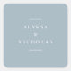Modernes und minimales Design Ihrer Namen in Weiß auf einem staubblauen Aufkleber in ausgefeilter Typografie. Ideal für jede Kennzeichnung von Hochzeitswaren, versiegelten Umschlägen und Packungen sowie für die Kennzeichnung von Dankeschön Geschenken, Brautmädchen oder Trauzeugen geben-aways oder andere Gegenstände im Zusammenhang mit den Festlichkeiten.