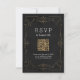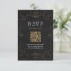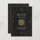 Vintage Eleganz verziertes Swirl-Rahmen-Design in goldener Farbe auf grunge schwarzen Hintergrund. Damask-Muster mit Monogramm-Design auf der Rückseite, modern, elegant und elegant, perfekt für Vintage Hochzeit, Art Deko Hochzeit das ganze Jahr über. Editierbare Hintergrundfarbe, um Ihren Hochzeitsmotiven zu entsprechen. Passen Sie Ihre eigene QR-Code-RSVP-Karte für Ihr Hochzeitseinladungs-Set an. Hier finden Sie alle passenden Stücke in dieser Kollektion "Gold Moderne Hochzeit".