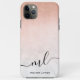 Herrliche personalisierte iPhone Gehäuse-Design mit Gradienten Imitate Kupfer Rose Gold, weiß Marmor Textur und elegante Kalligraphie Schriftart. Personalisieren Sie das Produkt mit Ihren Initialen und Ihrem Namen.
