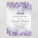 Feiern Sie mit dieser Lila und goldenen Einladung zum Geburtstag einen Meilenstein im Stil. Freuen Sie sich auf ein luxuriöses Aquarellblumen-Design mit edlen, goldfarbenen Details. Die elegante 45. Geburtstagseinladung bietet eine atemberaubende Mischung aus raffinierten Aquarellblumen und einem schicken lila und goldenen Thema. Sie ist die perfekte Wahl für alle, die künstlerische Geburtstagskarten mit Blumen schätzen. Dieses moderne Gold-Geburtstagsjubiläum ist für einen femininen Meilenstein konzipiert und bietet ein stilvolles und zeitloses Aussehen. So fühlt sich Ihr Fest besonders gut an. Diese luxuriöse personalisierte Einladung eignet sich ideal für diejenigen, die nach einer maßgeschneiderten Meilenstein-Feier mit einer klassischen 45. Geburtstagsankündigung suchen. Der lila Aquarellhintergrund verleiht einen künstlerischen Flair und macht ihn zu einer glamourösen lila Einladung für elegante Feiern. Egal ob Sie eine Blumengeburteinladung oder eine Premium-Druckoption suchen, diese einzigartige, blumengeschmückte Einladung ist vollständig anpassbar, sodass Sie Text, Datum und Details an Ihren besondere Anlass anpassen können. Danke, dass du vorbeigekommen bist! Wenn Sie Zweifel an der Anpassung haben, schreiben Sie mir hier oder kontaktieren Sie mich unter arteartz0588@gmail.com.