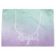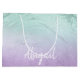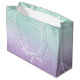 Dieses hübsche personalisierte Papier-Einkaufstasche-Design mit Gefälle Imitat Minze grüne Glitzer Marmor-Textur, lila Textur und elegante Kalligrafie-Schriftart. Personalisieren Sie das Produkt mit Ihrem Namen oder einem anderen Text.
