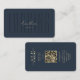 Elegante moderne Monogram Logging Operator Dark Blue Gold Visitenkarte mit QR Code