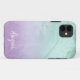 Dieses hübsche personalisierte iPhone Gehäuse-Design bietet Farbverlauf Imitate minze grüne Glitzer Marmorstruktur, lila Textur und eleganten Kalligraphie Schriftart. Personalisieren Sie das Produkt mit Ihrem Namen oder einem anderen Text.