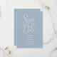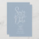 Diese dustig blaue, elegante Script Hochzeit rett-the-date Einladung kann mit all Ihren speziellen Hochzeitstag Informationen und Hochzeitswebsite QR Code personalisiert werden. Entwickelt von Thisisnotme©