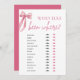 Nehmen Sie an einer Reise der gemeinsamen Erfahrungen mit unserem rosafarbenen Jungen teil. Sie bindet das Brautparty, das schon mal dort war, wo das Spiel war. Die Gäste werden Geschichten von ihren Abenteuern und Reisen erzählen, wer verschiedene Reiseziele besucht hat, lachen und lebhaft unterhalten. Mit seinem zauberhaften, rosa Bug-Design fügt dieses Spiel Ihrer Feier eine skurrile Touch hinzu und schafft gleichzeitig unvergessliche Momente für die Braut und ihre Gäste. Lass die Geschichten, wenn sich jeder durch seine Wanderlust und Abenteuer verbindet!