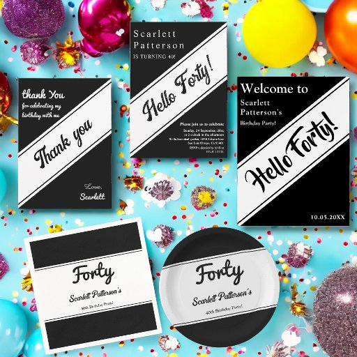 Eleganter, moderner Schwarz-Weiß-Chic zum Geburtst Dankeskarte