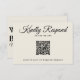 Eine einfache und elegante Kalligraphie schwarz-weiß Retro Hochzeit rsvp Karte. Das hat einen Vintagen, modernen, stylischen Vintagen Hintergrund mit schwarzem Skript. Und anpassbarer QR-Code. Minimalistisch und elegant mit handgeschriebener Schrift. Sie können alle editierbar sein, indem Sie auf die Schaltfläche Personalisieren klicken.