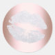 Eleganter, moderner silberner Glitzer Lippen Rose Runder Aufkleber