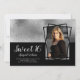 Stilvolle geometrische Sweet 16 Geburtstagsfeier Einladung in Imitate silber und schwarz. Laden Sie Ihr Lieblings-Foto hoch.